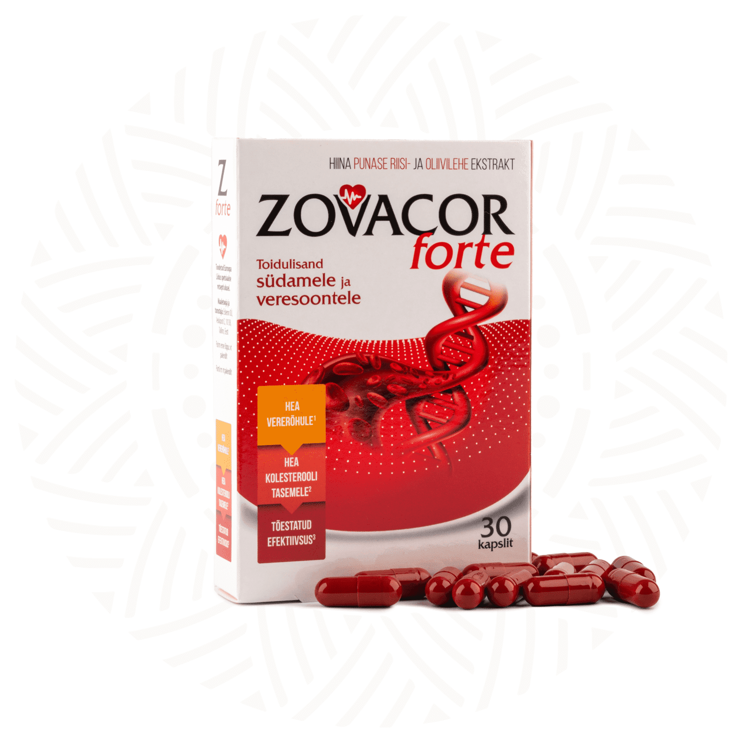Zovacor Forte is a special dietary supplement for maintaining heart and vascular health, containing Chinese red rice, red onion, and olive leaf extracts.