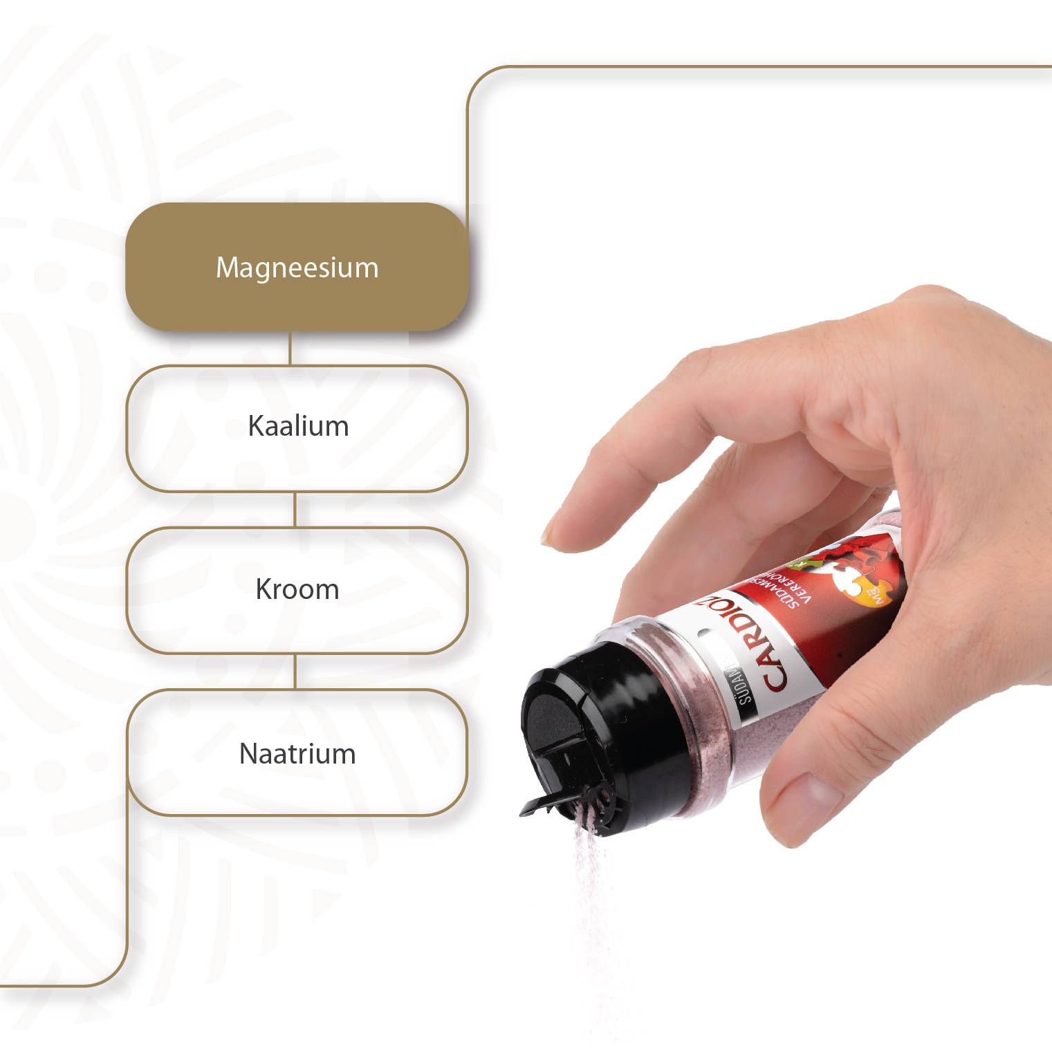 Cardioza Südamesool sisaldab naturaalseid mineraalseid sooli, mis on saadud looduslikest maa-alustest soola ladestustest ning mineraalvee ja kõrgmineraliseeritud vee aurutamisel.