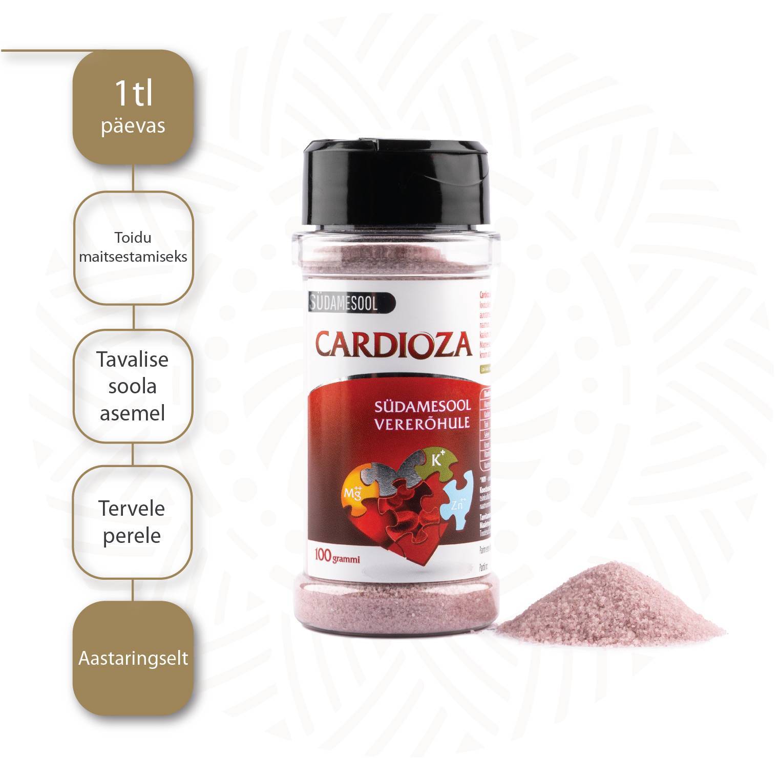 Cardioza Südamesool sisaldab tavalisest meresoolast 53% vähem naatriumi.