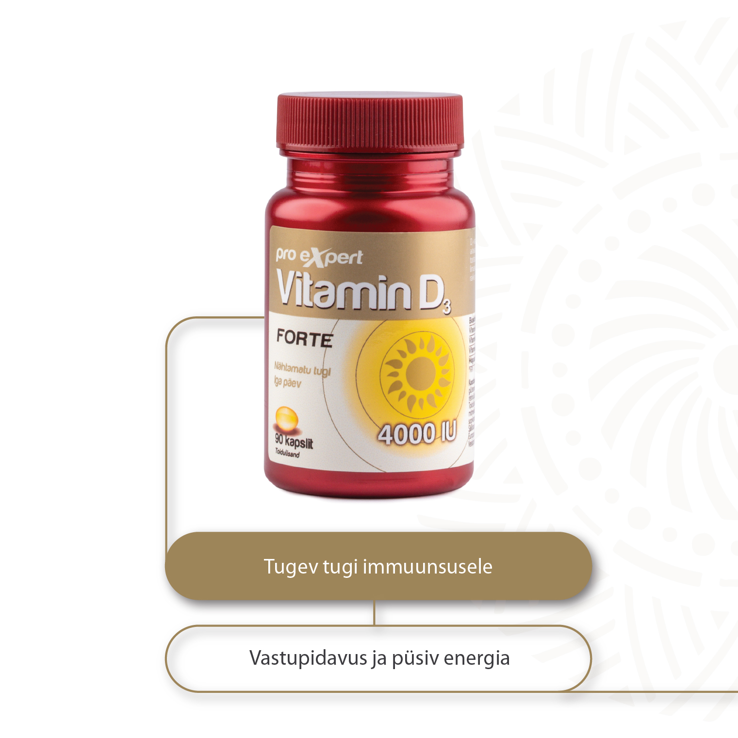 D3-vitamiini õlikapslid A- ja E–vitamiiniga. D-vitamiin ja A-vitamiin aitavad kaasa immuunsüsteemi normaalsele talitlusele. A-vitamiin toetab limaskesteda normaalset tervist, sealhulgas nina- ja kurgu limaskesti. E-vitamiin aitab kaitsta rakke, sealhulgas immuunsüsteemi rakke, oksüdatiivse stressi eest.